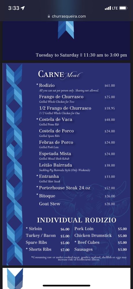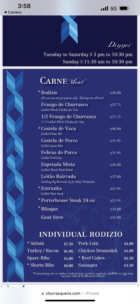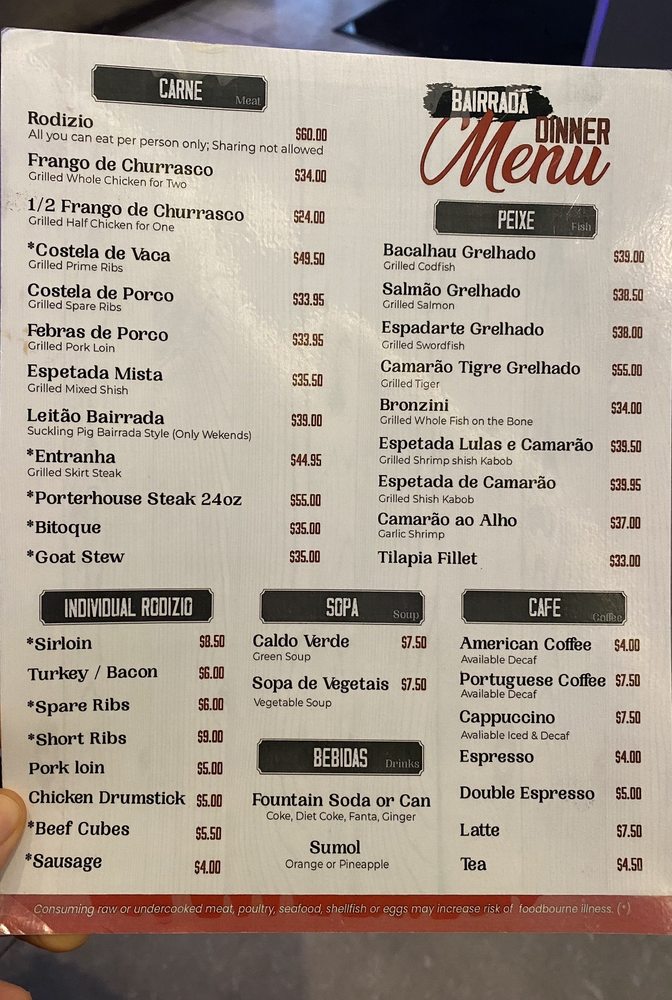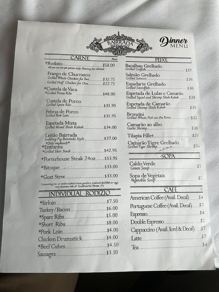 Churrasqueira Bairrada Restaurant offers a variety of meats from Rodizio options to individual cuts, such as sirloin, chicken, turkey, and pork. The grilled Bronzini and garlic shrimp are also popular choices from the seafood selection. Customers rave about the delicious food, great service, and pleasant ambiance. The restaurant is known for its juicy skirt steak, seasoned vegetables, and flavorful chicken. The Portuguese bread and red sangria are also highly recommended. With options for delivery, takeout, and catering, Churrasqueira Bairrada Restaurant is a top choice for a satisfying dining experience.